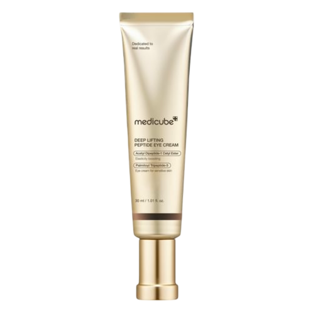 Medicube Deep Lifting Peptide Eye Cream provides your tender under-eye skin with intense moisture and targets saggy skin, under-eye puffiness & crow's feet! Enriched with a high concentration of peptides, this nourishing eye cream addresses signs of aging such as fine lines and wrinkles by intensely firming the skin and improving elasticity. Combined with seven kinds of hyaluronic acid, it also retains and prolongs moisture levels in the skin.